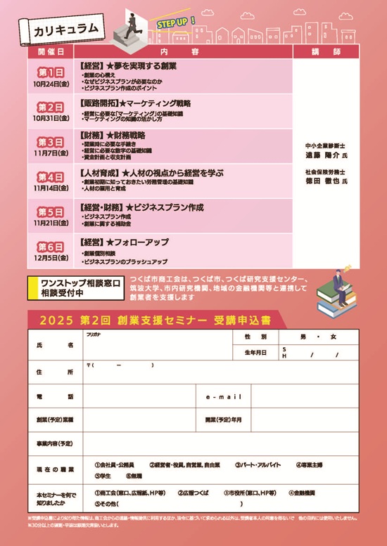 つくば市創業支援セミナーは、つくば市で創業を考えている方を対象に、創業に必要な知識を専門家から学べるセミナーで、つくば市での創業を志す方を支援し、必要な基礎知識を提供することを目的としています。