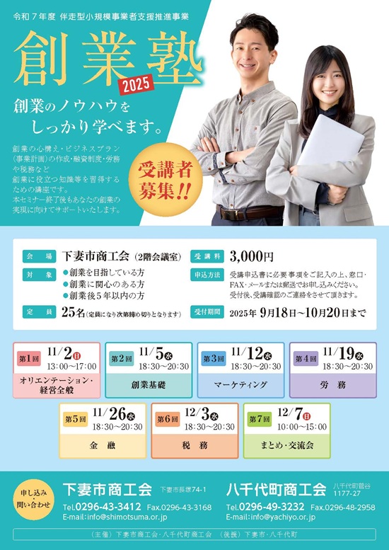 「2025創業塾」(下妻市商工会様・八千代町商工会様主催)に登壇しました。